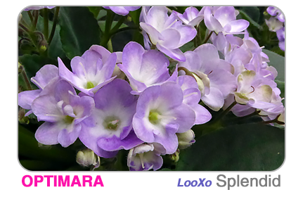 Delightful (2018) Series: Looxo, Pot Size: 4-inch Bloom Type: Single to Semidouble Bloom Color: White, Lilac Leaf Type: Plain, Serrated Leaf Color: Medium Green Trademark: Optimara